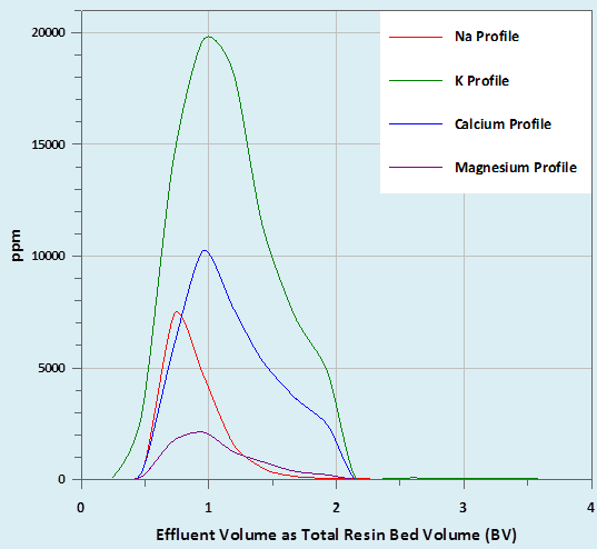 This is indicative of a healthy ion exchange system and includes amongst others a well packed resin bed with excellent plug flow that has been achieved using good fluid distribution systems designed to deliver optimum performance. This principle forms the simple but crucial basis of successful ion-exchange scale up applied by Separation Techniques Limited on all its process applications.